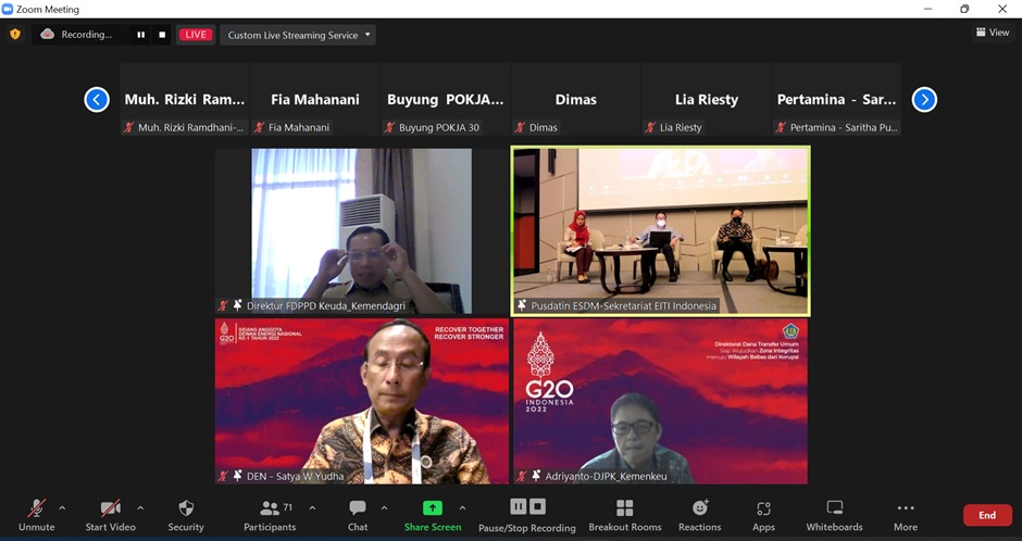 Sekretariat EITI Indonesia menyelenggarakan dialog “Dana Abadi Daerah Penghasil: Bagaimana Pengelolaan & Pemanfaatannya untuk Pembangunan yang Adil & Berkelanjutan” pada Selasa, 19 Juli 2022.